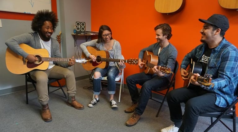 Group guitar lessons for complete beginners, learn with a small group of beginner guitar players, and grow in this journey with your peers!